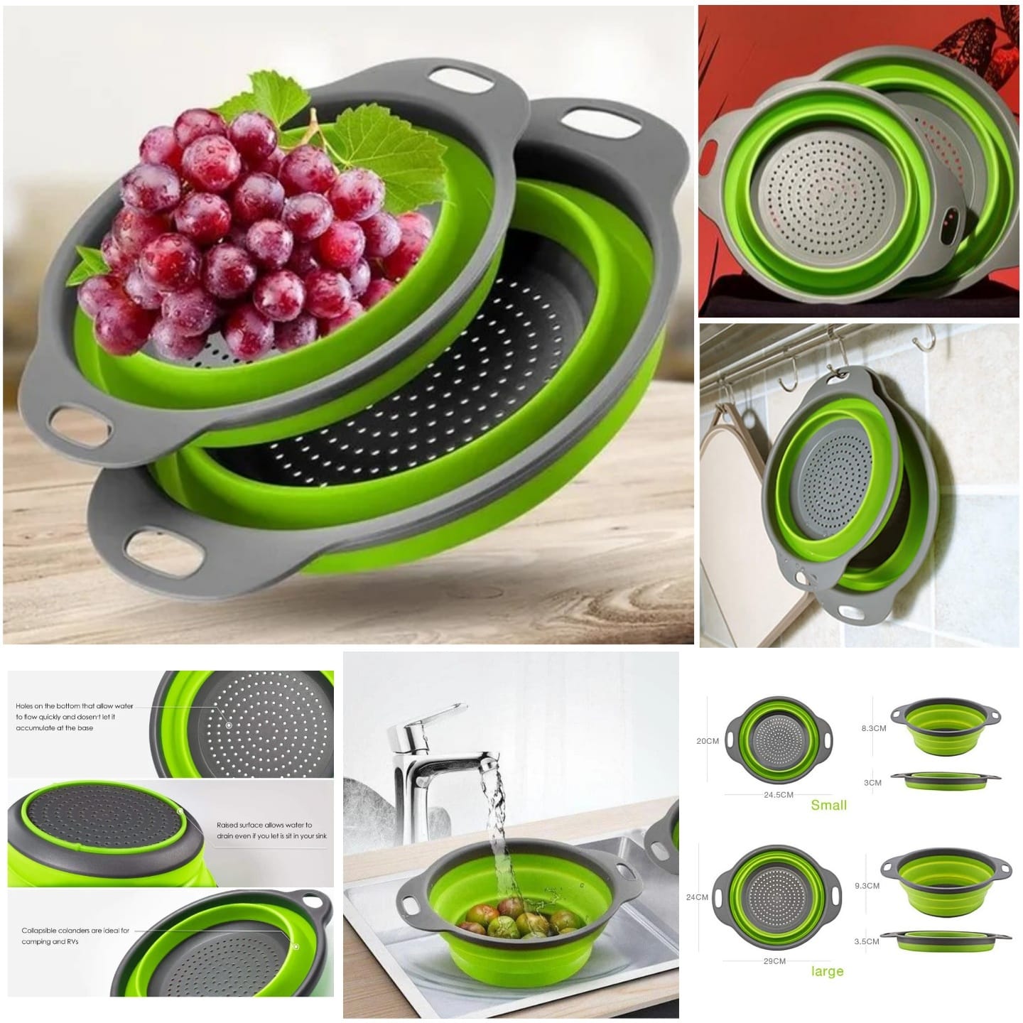 Folding kitchen fruit filter baskets. Works for draining most foods like spaghetti, pasta, potatoes, broccoli, green beans, carrots, spinach and other veggies. Use these strainers to rinse your salad leaves, fruits and fresh vegetables. Made of food grade material, safe to use. Environmental friendly & non-toxic, non sticky. Easy to clean. Foldable. Durable to use.