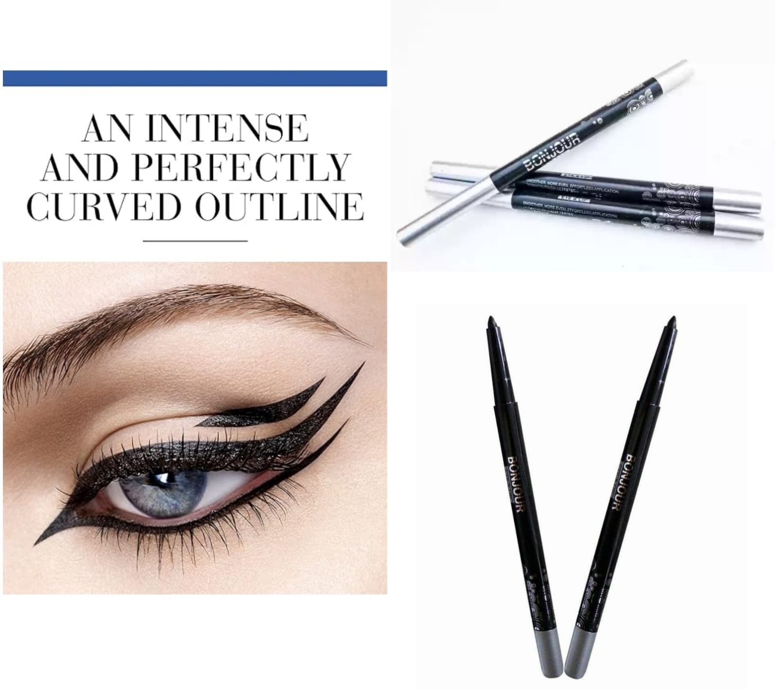 All-day, creamy liner for precise, bold, blendable lines. Fade-proof, smudge-proof and waterproof. Soft, blendable, kohl. Colour: black. 15cm.